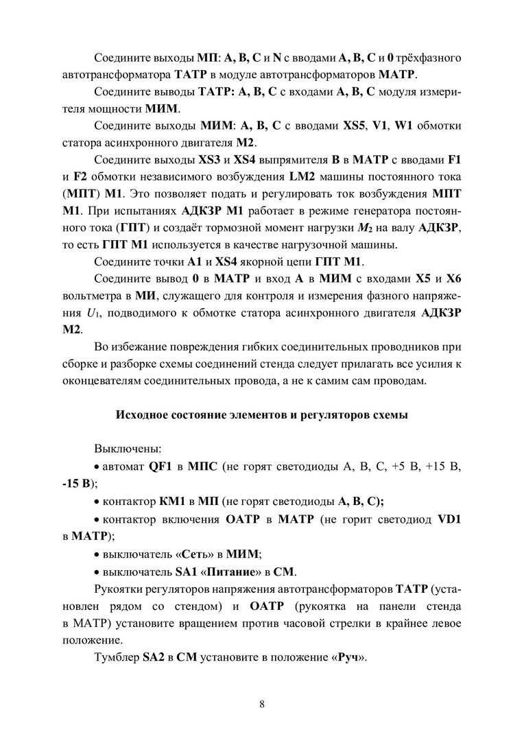 Аннотация:Пособие создано для выполнения работ с использованием лабораторного стенда. Стенд предназначен для выполнения двух лабораторных работ по испытаниям асинхронных машин.