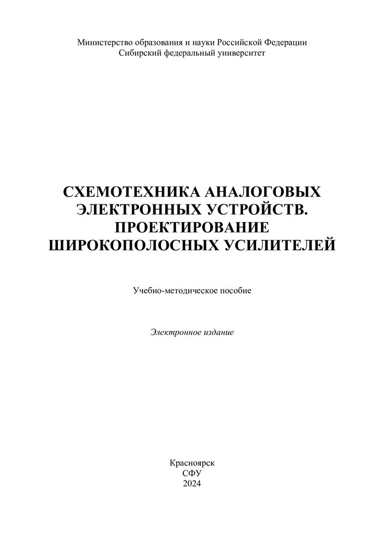 Библиографическое описание:Схемотехника аналоговых электронных устройств. Проектирование широкополосных усилителей : учебно-методическое пособие / Сиб. федер. ун-т, Ин-т инж. физики и радиоэлектроники ; сост.: А. Г. Григорьев, Ф. Г. Зограф. - Электрон. текстовые дан. (pdf, 1 Мб). - Красноярск : СФУ, 2024 (2024-02-20). - 38 с. - Загл. с титул. экрана. - Изд. № 2023-20783 : Б. ц. - Текст : электронный.