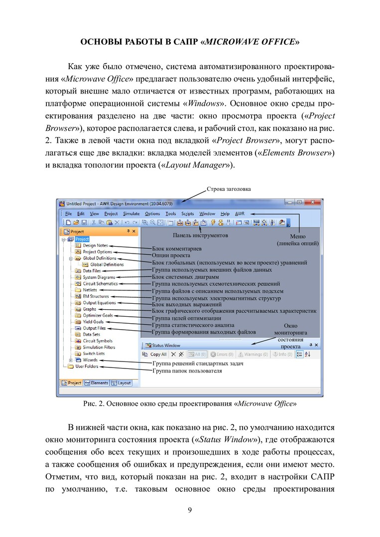 Аннотация: Приведены описания лабораторных работ и задание на выполнение курсовой работы, которые студентам нужно выполнить в рамках изучения дисциплины «Устройства СВЧ и антенны». Все работы предлагается выполнить с помощью известной системы автоматизированного проектирования «AWR Microwave Office» версии 10.04. Каждая работа содержит теоретический материал, в котором кратко изложены принципы работы рассматриваемого устройства. Кроме того, во всех лабораторных работах подробно описывается техника проектирования и настройки рассматриваемых СВЧ устройств в «AWR Microwave Office», а также приводится порядок выполнения работы и обработки полученных результатов. Предназначено для студентов вузов, обучающихся по направлению 11.03.01 «Радиотехника».