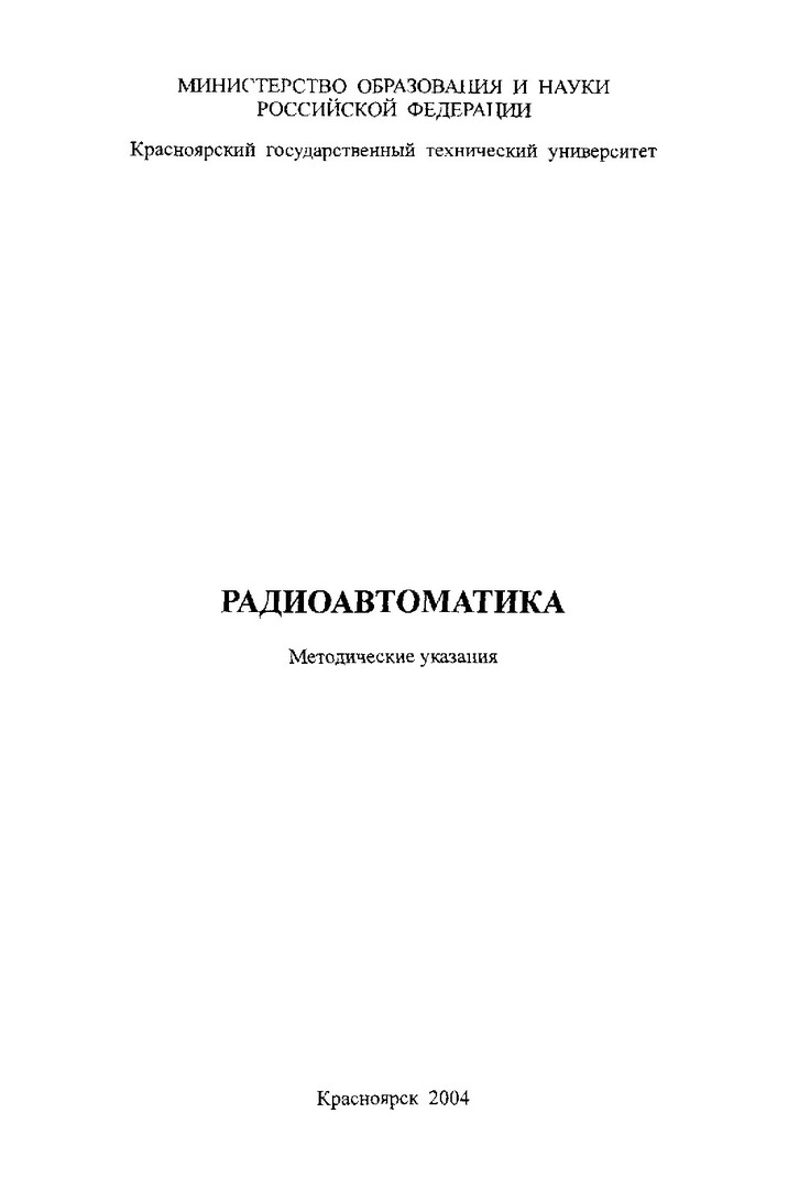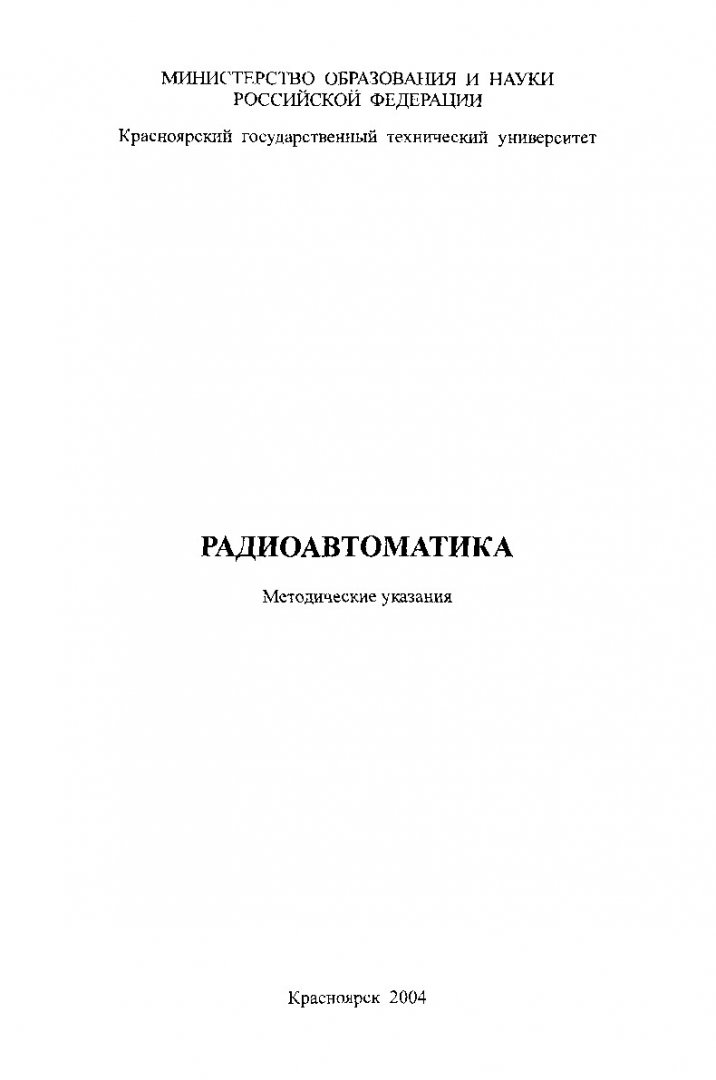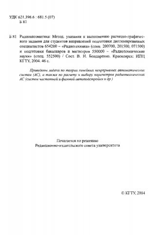 Радиоавтоматика : метод. указ. к выполнению расчетно-графич. задания для студентов направлений подгот. дипломир. спец. 654200 и подгот. бакалавров и магистров 550000