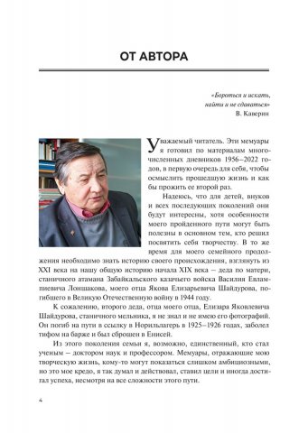 Аннотация: Представлены воспоминания известного ученого, доктора технических наук, профессора, заслуженного деятеля науки и техники РФ о жизни и творчестве на основе его дневников. Описаны военное детство, юность, студенческие годы, работа в промышленности и вузе, экспедиции и туристические тропы. Ряд материалов посвящен формированию личности человека, его творческой направленности, становлению молодого специалиста от студента до профессионального инженера. Предназначено широкому кругу читателей.