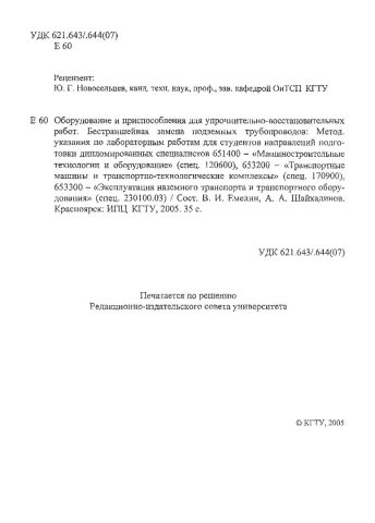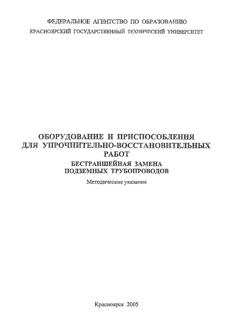 Оборудование и приспособления для упрочнительно - восстановительных работ. Бестраншейная замена подземных трубопроводов : метод. указ.FВ. И. Емелин, А. А. Шайхадинов