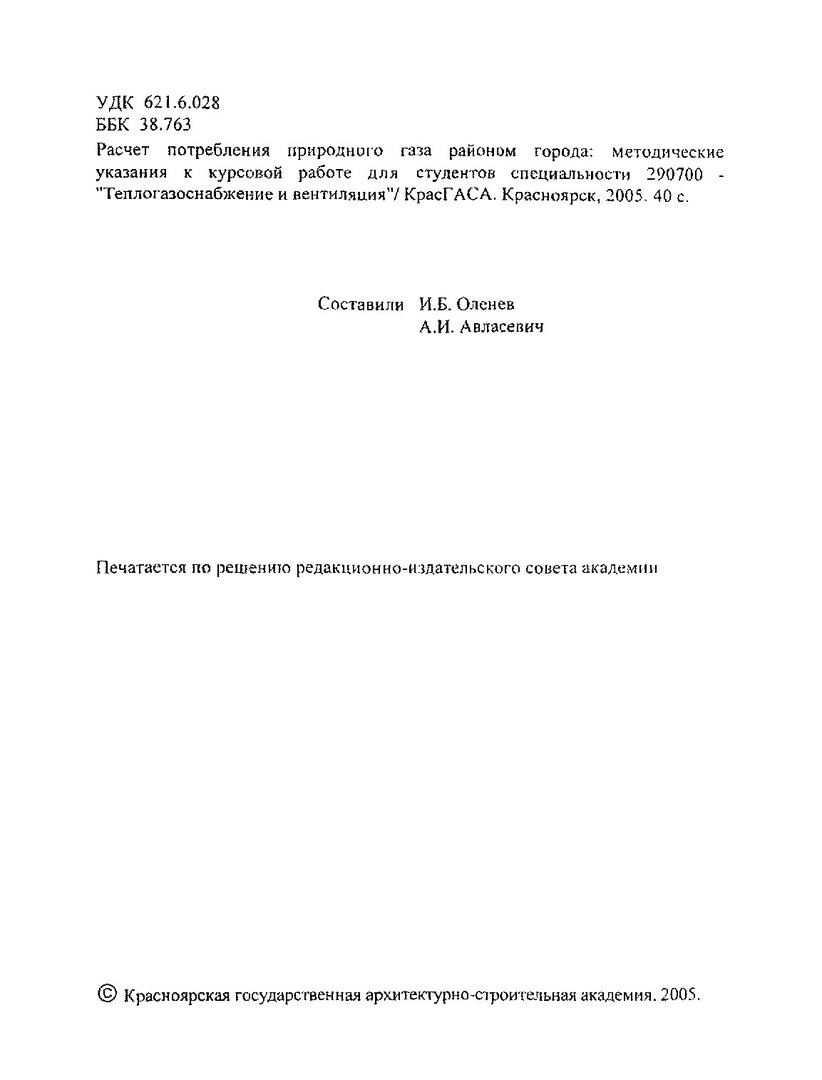Библиографическое описание:Расчет потребления природного газа районом города : методические указания к курсовой работе для студентов спец. 290700 "Теплогазоснабжение и вентиляция" / Краснояр. гос. архит.-строит. акад. ; сост.: И.Б. Оленев, А.И. Авласевич. - Красноярск : КрасГАСА, 2005. - 40 с.