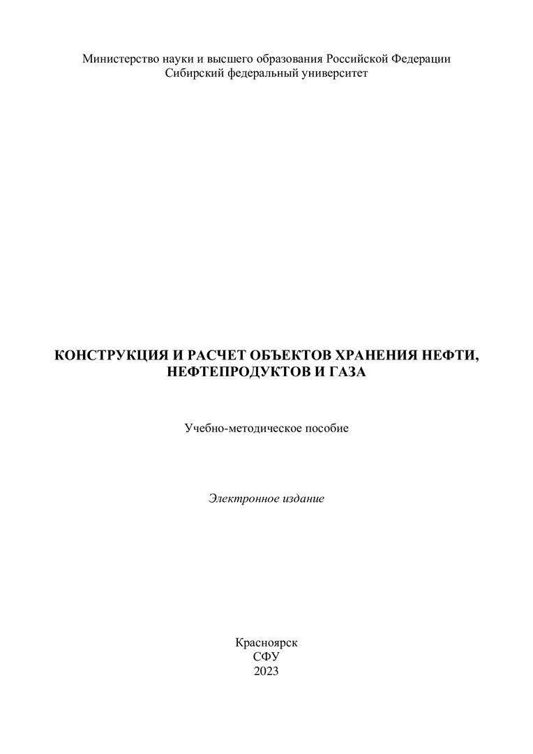 Библиографическое описание:Конструкция и расчет объектов хранения нефти, нефтепродуктов и газа : учебно-методическое пособие / Сиб. федер. ун-т, Ин-т нефти и газа ; сост.: В. Г. Шрам, С. И. Иванова. - Электрон. текстовые дан. (pdf, 1,4 Мб). - Красноярск : СФУ, 2023 (2023-06-06). - 52 с. - Загл. с титул. экрана. - Изд. № 2023-19207 : Б. ц. - Текст : электронный.