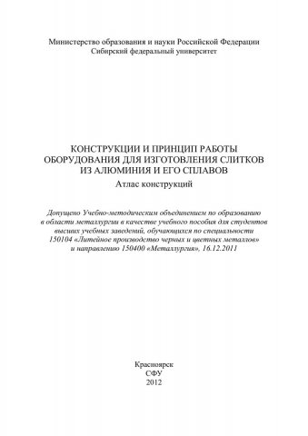 Конструкции и принцип работы оборудования для изготовления слитков из алюминия и его сплавов. Атлас конструкций : учеб. пособие для студентов вузов спец. 150104 «Литейное производство черных и цветных металлов»учебное пособие