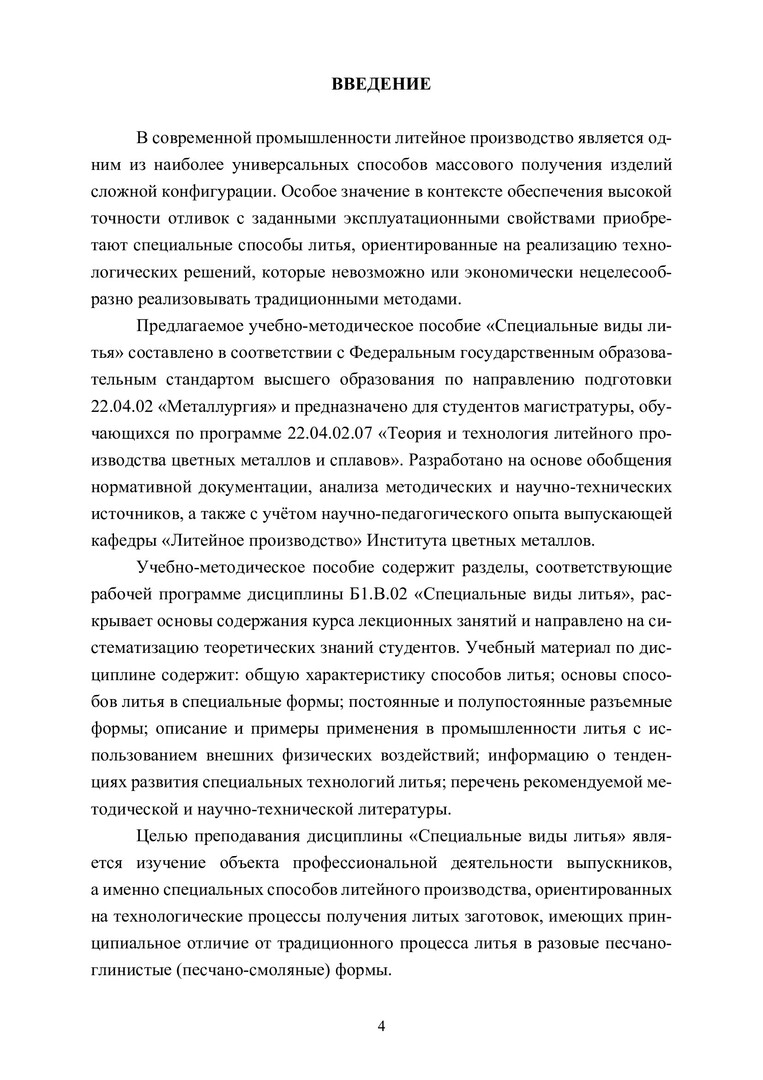 Аннотация: Представлены последовательное изложение лекций по дисциплине «Специальные виды литья», вопросы для самопроверки, перечень рекомендуемой методической и научно-технической литературы. Содержит разделы, соответствующие рабочей программе дисциплины, раскрывает основы содержания курса. Предназначено для организации образовательного процесса по программе магистратуры 22.04.02.07 «Теория и технология литейного производства цветных металлов и сплавов». Может быть полезно преподавателям и студентам магистратуры технических вузов металлургических направлений подготовки.