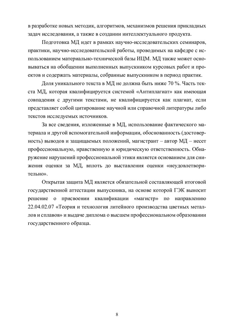 Ключевые слова: литейное производство, магистерские диссертации, патентные исследования, оформление диссертации, квалификационные работы магистров