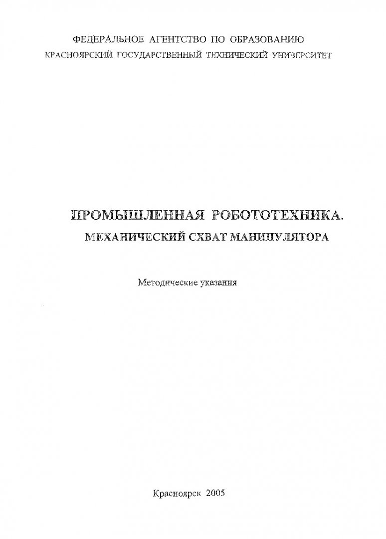 Промышленная робототехника. Механический схват манипулятора : Метод. указ. по самостоят. работе для студентов напр. подг. дипломир. спец. 653200 и 653300