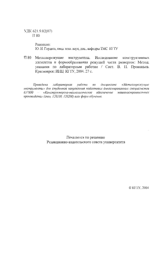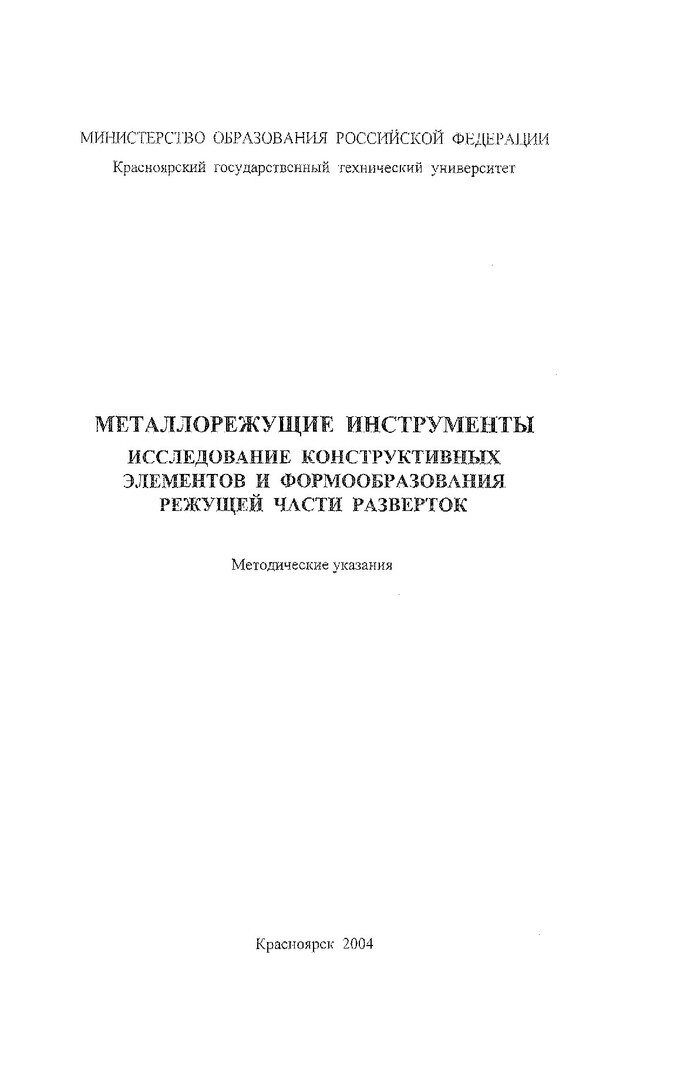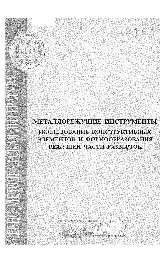 Библиографическое описание:Прокопьев, Василий Павлович. Металлорежущие инструменты. Исследование конструктивных элементов и формообразования режущей части разверток : метод. указ. по лаб. работам / В. П. Прокопьев ; Краснояр. гос. техн. ун-т. - Красноярск : ИПЦ КГТУ, 2004. - 27 с. : ил. - (Учебно-методическая литература). - Текст : непосредственный + Текст : электронный.