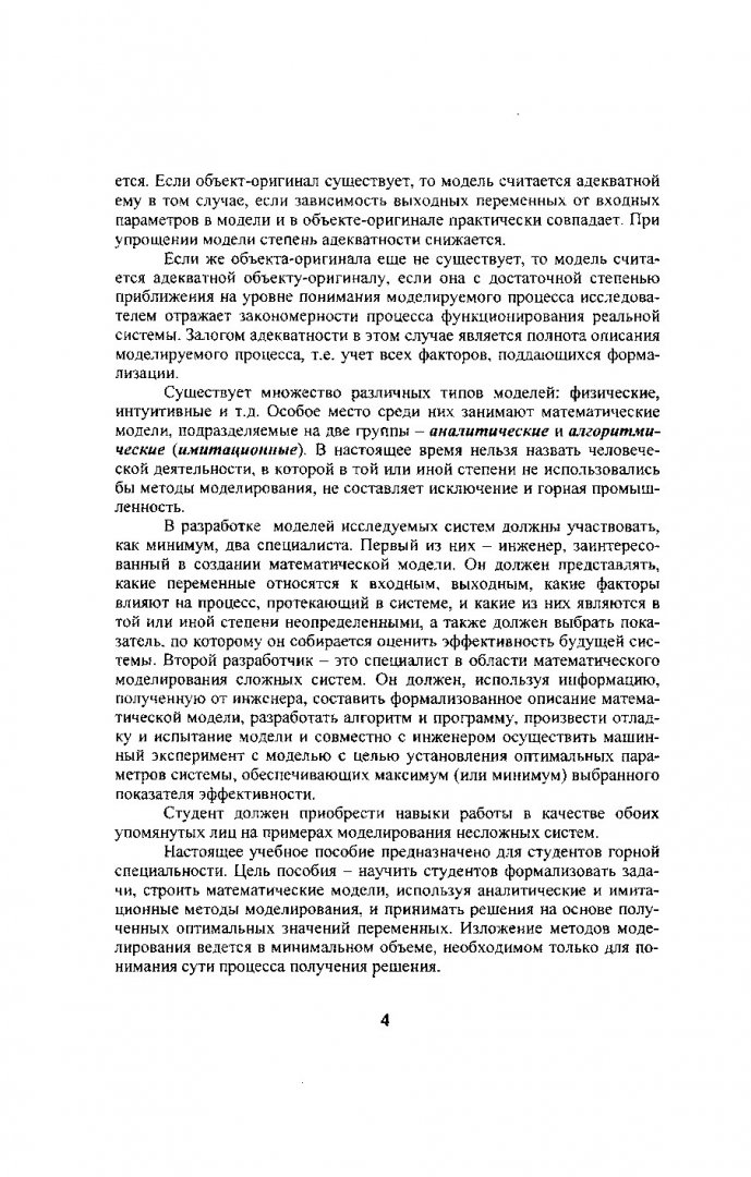Аннотация: В учебном пособии представлены основные методы математического моделирования при решении горнотехнических задач на карьерах. Описан метод аналитического моделирования на примерах задач линейного программирования. Достаточно подробно рассмотрены вопросы статистической обработки экспериментальных данных, кроме того, уделено внимание вопросам построения и оценки эмпирических формул по результатам наблюдений. Приведенные в работе методы имитационного моделирования позволяют моделировать случайные события и величины, распределенные по равномерному, нормальному, показательному, пуассоновскому законам. Пособие предназначено для студентов, обучающихся по направлению 650600 «Горное дело» специальности 090500 «Открытые горные работы».