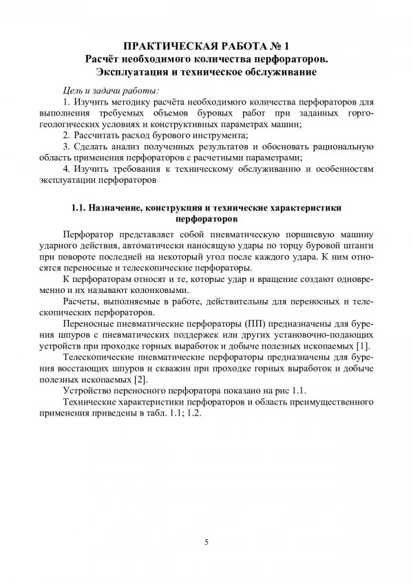 Аннотация: В методическом пособии освещены вопросы по конструкции бурильных машин и инструмента для бурения шпуров и скважин в подземных условиях различными способами. Приводятся методики расчета режимных параметров буровых машин и производительности бурения. Значительная часть пособия отведена информации по организации технического обслуживания бурильных машин и инструмента, и безопасной их эксплуатации. Предназначено для студентов всех форм обучения по направлению подготовки (специальности) 21.05.04 «Горное дело», для специализаций «Горные машины и обо-рудование»; «Подземная разработка рудных месторождений»; «Шахтное, подземное строительство».
