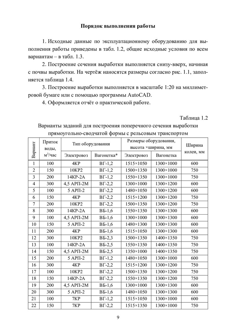 Ключевые слова: строительство горных выработок, строительство подземных сооружений, горизонтальные горные выработки, поперечное сечение, расчет крепей, проходческое оборудование, циклограммы, расположение шпуров, буровзрывные работы, проветривание горных выработок