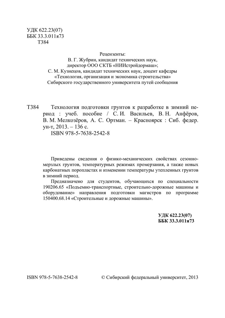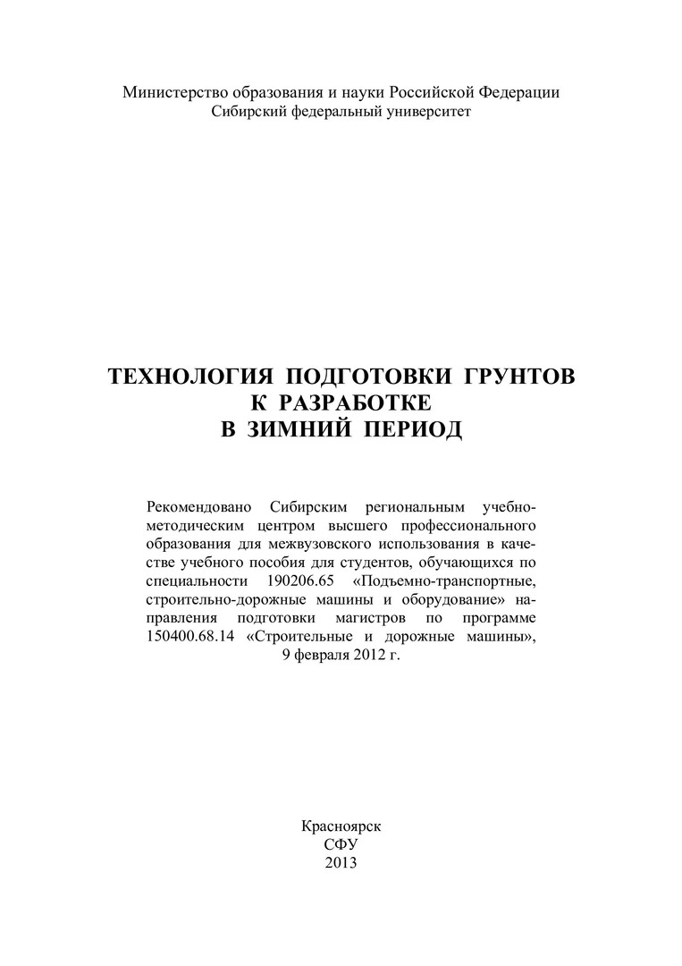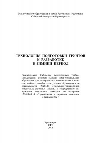 Технология подготовки грунтов к разработке в зимний период : учебное пособие для студентов вузов, обуч. по спец. 190206.65 "Подъемно-транспортные, строительно-дорожные машины и оборудование", 150400.68.14 "Строительные и дорожные машины"