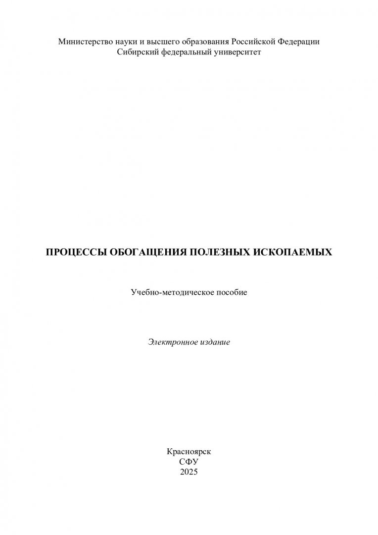 Библиографическое описание: Процессы обогащения полезных ископаемых : учебно-методическое пособие / Сиб. федер. ун-т, Ин-т цветных металлов ; сост. Н. И. Коннова. - Электрон. текстовые дан. (pdf, 10 Мб). - Красноярск : СФУ, 2025 (2025-10-07). - 103 с. - Загл. с титул. экрана. - Изд. № 2025-25226 : Б. ц. - Текст : электронный.
