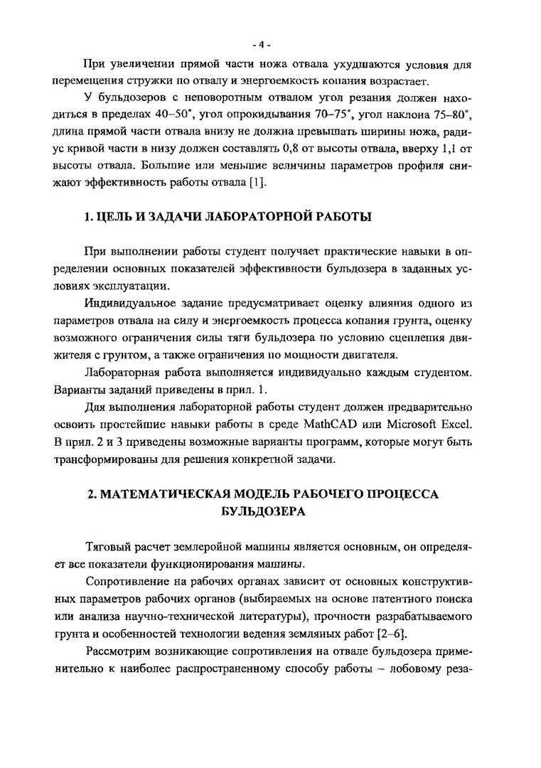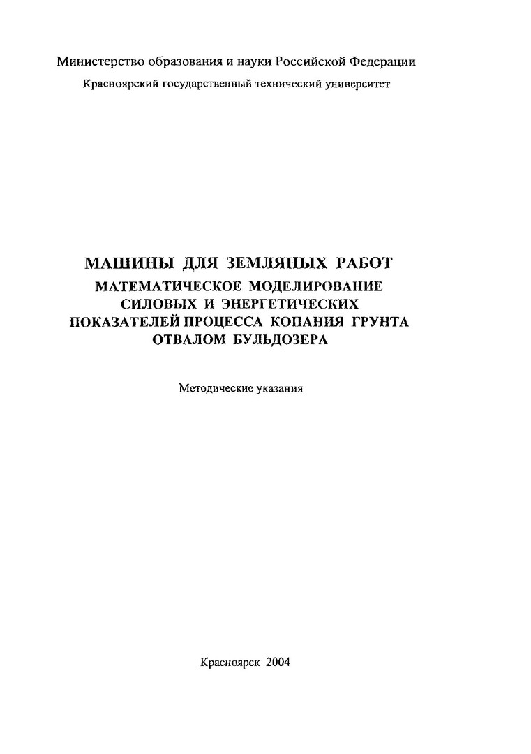 Машины для земляных работ. Математическое моделирование силовых и энергетических показателей процесса копания грунта отвалом бульдозера : метод. указ. по лаб. работе для студентов направлений подгот. дипломирован. спец. 653200, 653300