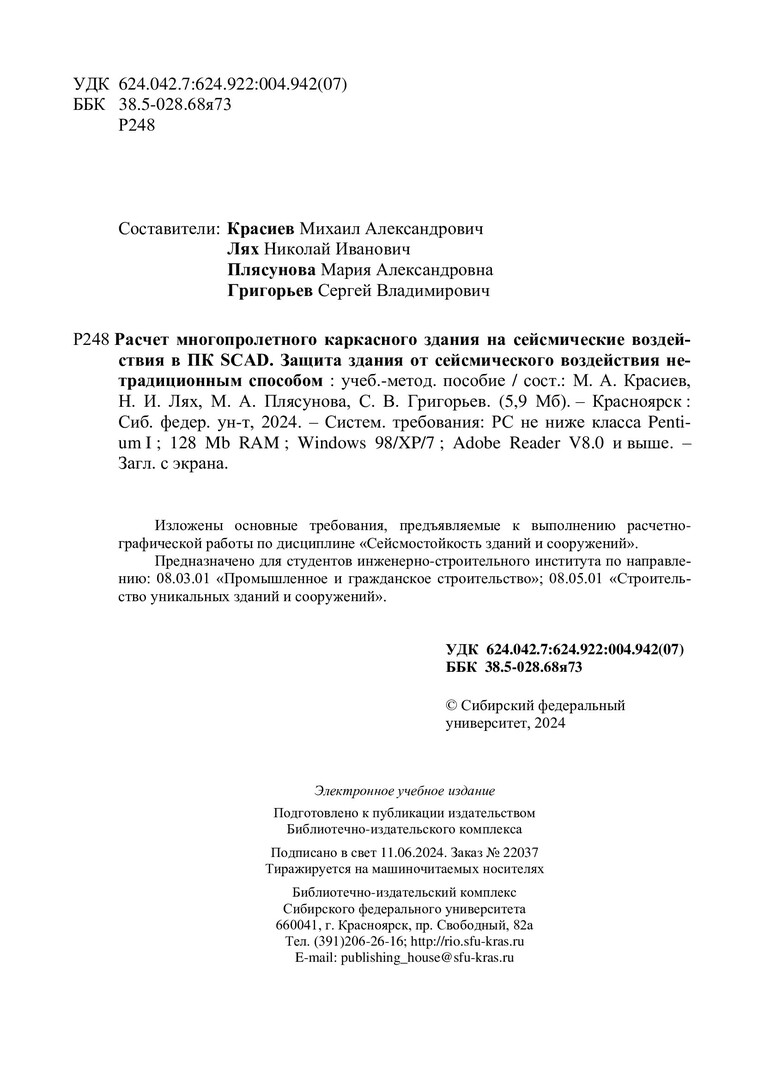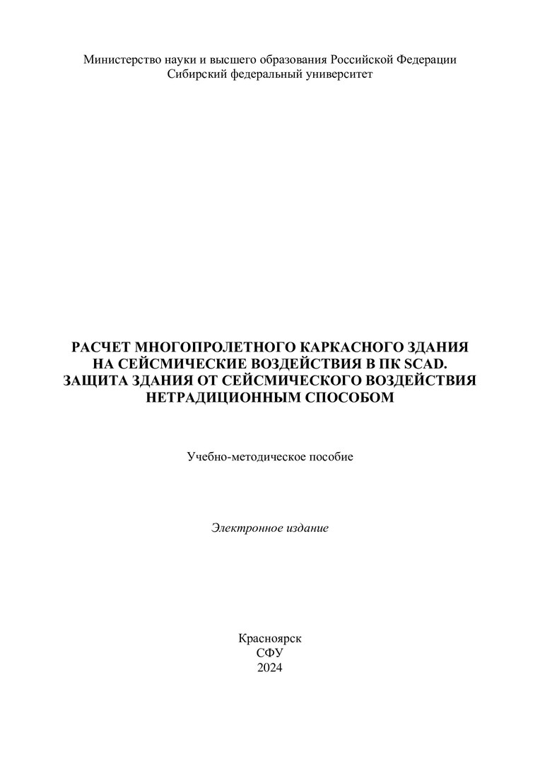 Библиографическое описание:Расчет многопролетного каркасного здания на сейсмические воздействия в ПК SCAD. Защита здания от сейсмического воздействия нетрадиционным способом : учебно-методическое пособие / Сиб. федер. ун-т, Инж.-строит. ин-т ; сост. М. А. Красиев [и др.]. - Электрон. текстовые дан. (pdf, 5,9 Мб). - Красноярск : СФУ, 2024 (2024-06-11). - 62 с. - Загл. с титул. экрана. - Изд. № 2024-22037 : Б. ц. - Текст : электронный.