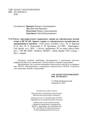 Расчет многопролетного каркасного здания на сейсмические воздействия в ПК SCAD. Защита здания от сейсмического воздействия нетрадиционным способом : учебно-методическое пособие