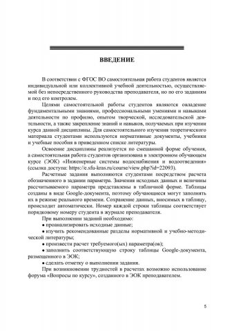 Аннотация: Изложены теоретические сведения, необходимые для расчетов и проектирования инженерных сетей водоснабжения и водоотведения. Приведена справочная информация для выполнения самостоятельных работ, даны варианты исходных данных, ссылки на нормативные и справочные источники. Представлены примеры решения задач по проектированию инженерных сетей. Предназначено для студентов направления 08.03.01 «Строительство».