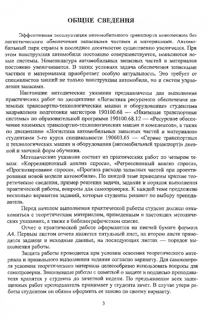 Ключевые слова:автомобильный сервис, расход запасных частей автомобиля, обеспечение запасными частями, корреляционный анализ спроса, регрессионный анализ спроса, прогнозирование спроса, практические занятия, метод. указ., бр2575
