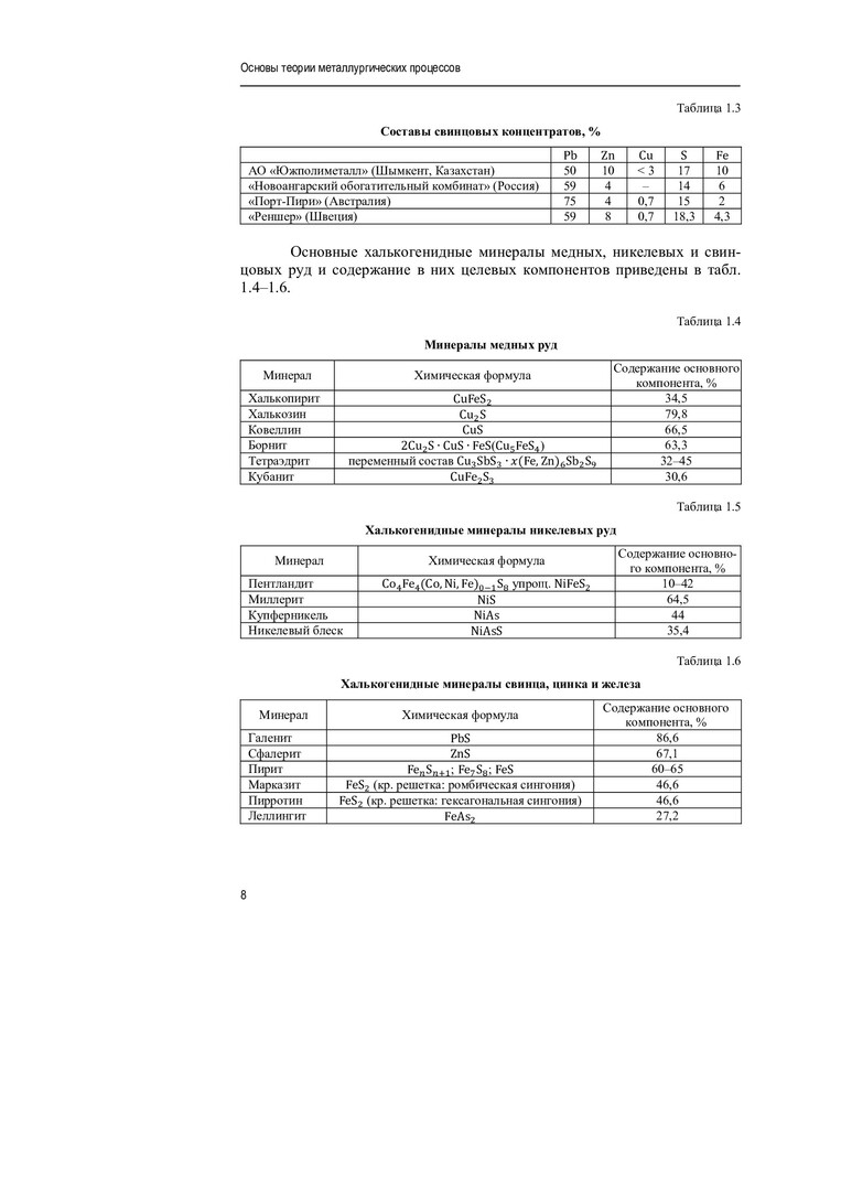 Ключевые слова: металлургические процессы, пирометаллургические процессы, термодинамика пирометаллургических процессов, окислительный обжиг сульфидных концентратов, восстановление металлов из окислов, восстановление металлов из растворов, сульфидные плавки, металлургические шлаки, гидрометаллургические процессы, растворение металлов, металлы, растворение, разложение труднорастворимых соединений, осаждение труднорастворимых соединений, труднорастворимые соединения, гидроэлектрохимические процессы, выщелачивание, экстракция, сорбционные процессы, гидромеханические процессы