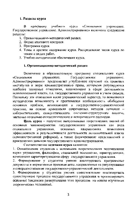 Социальное управление. Государственное управление. Администрирование : программа спецкурса и рабочая программа для студентов государственно-правовой специализации по специальности (02.11.00) "Юриспруденция"