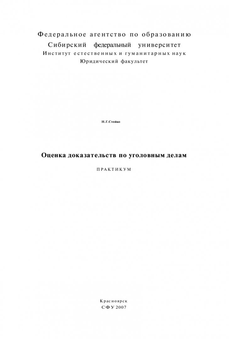 Библиографическое описание:Стойко, Николай Геннадьевич. Оценка доказательств по уголовным делам : практикум [для студентов дневной, заочной и очно-заочной формы обучения специальности 02.11.00 "Юриспруденция"] / Н. Г. Стойко ; Сибирский федеральный университет [СФУ]. Юридический факультет. - Красноярск : Сибирский федеральный университет [СФУ], 2007. - 28 с. - 35 р. - Текст : непосредственный + Текст : электронный. Режим доступа: читальные залы НБ СФУ