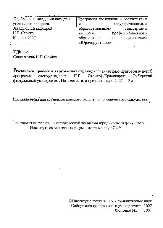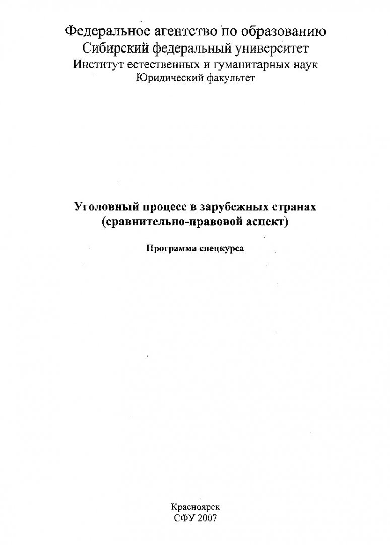 Библиографическое описание:Уголовный процесс в зарубежных странах (сравнительно-правовой аспект) : программа спецкурса / Сибирский федеральный университет [СФУ]. Институт естественных и гуманитарных наук [ИЕиГН], Сибирский федеральный университет [СФУ]. Юридический факультет ; сост. Н. Г. Стойко. - Электронные данные (PDF ; 0,74 Мб). - Красноярск : Сибирский федеральный университет. Институт естественных и гуманитарных наук СФУ, 2007. - Загл. с титул. экрана. - Текст : электронный. Режим доступа: читальные залы НБ СФУ
