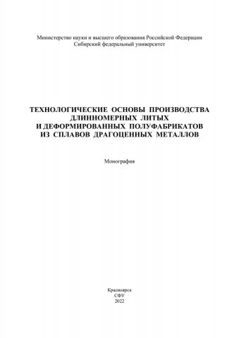 Технологические основы производства длинномерных литых и деформированных полуфабрикатов из сплавов драгоценных металлов : монография