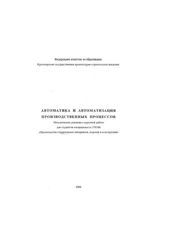 Автоматика и автоматизация производственных процессов : методические указания к курсовой работе для студентов спец. 270106 "Производство строительных материалов, изделий и конструкций"