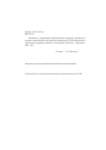 Библиографическое описание:Автоматика и автоматизация производственных процессов : методические указания к курсовой работе для студентов спец. 270106 "Производство строительных материалов, изделий и конструкций" / сост. А. П. Прокопьев. - Красноярск : КрасГАСА, 2006. - 24 с. : табл