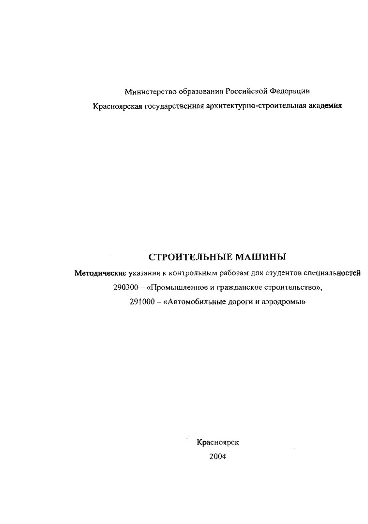Библиографическое описание:Строительные машины : методические указания к контрольным работам для студентов спец. 290300 "Промышленное и гражданское строительство", 291000 "Автомобильные дороги и аэродромы" / сост.: Р.Т. Емельянов, А.П. Прокопьев, Е.С. Турышева. - Красноярск : КрасГАСА, 2004. - 50 с.