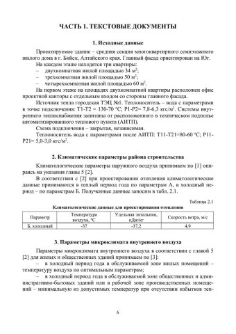 Аннотация: В учебно-методическом пособии содержатся материалы для выполнения курсового проекта отопление жилого многоквартирного дома со встроенными помещениями на первом этаже. Излагается последовательность проектирования основных элементов систем отопления жилого многоквартирного дома со встроенными помещениями на первом этаже. Приводятся примеры расчетов. Предназначено для студентов всех форм обучения по направлению подготовки 08.03.01 «Строительство». Рекомендуется для специалистов, получающих второе высшее образование; для профессиональной переподготовки и повышения квалификации специалистов, занимающихся проектированием и эксплуатацией систем отопления.