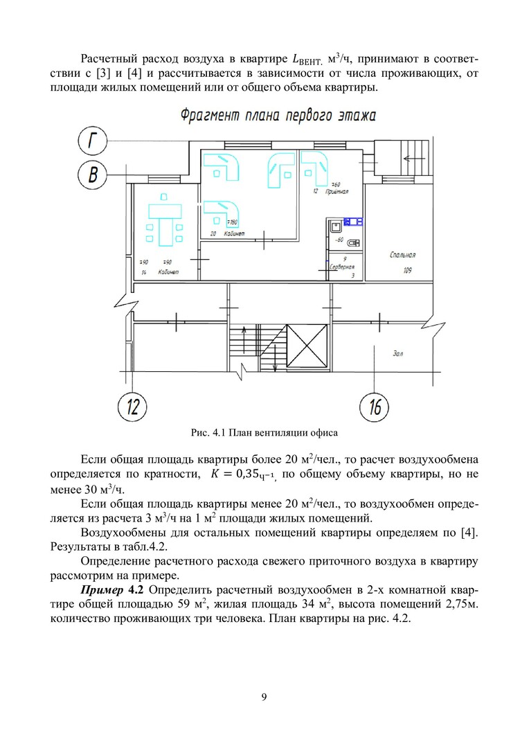 Ключевые слова: воздухообмен в помещениях, расчет вентиляции, кондиционирование воздуха помещений, курсовое проектирование