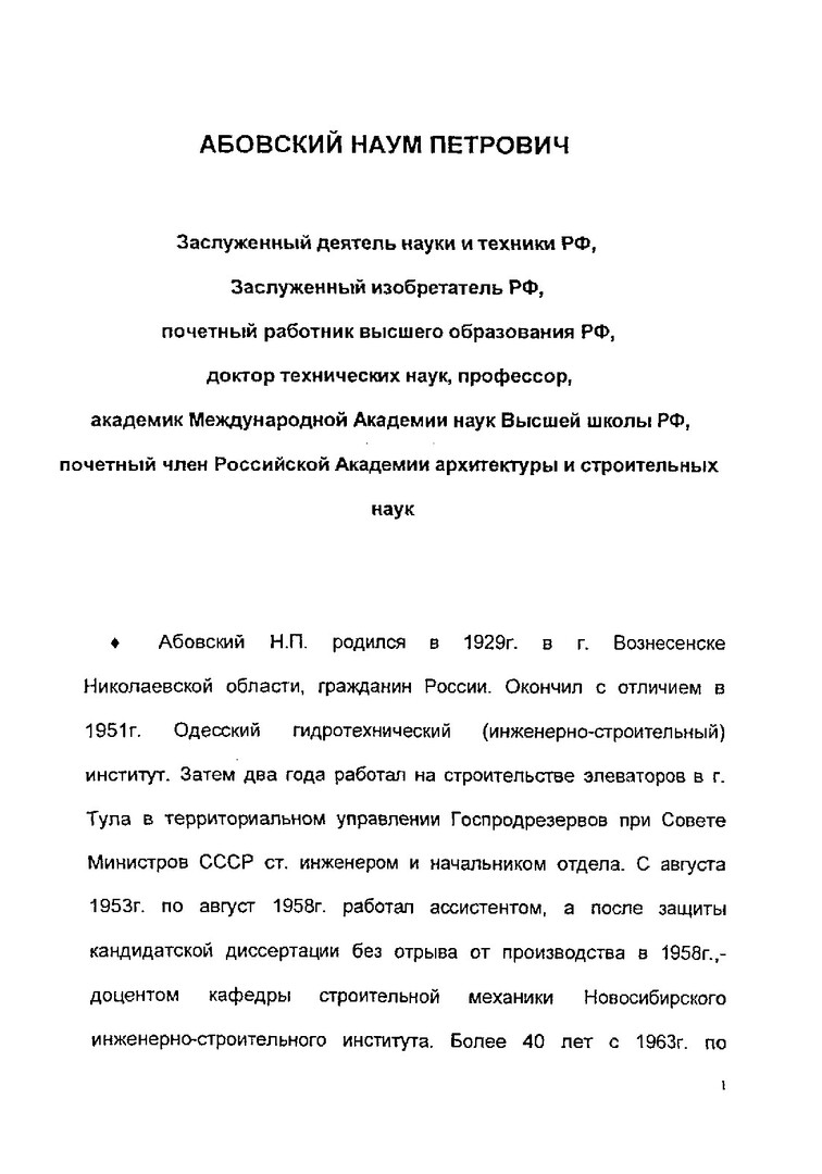 Абовский Наум Петрович : к 75-летию со дня рождения и 40-летию руководства кафедрой "Строительная механика и управление конструкциями" со дня ее создания