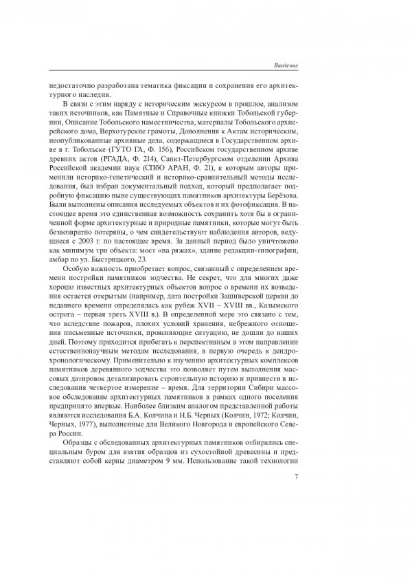 Аннотация: Книга является результатом историко-архивных и полевых исследований группы авторов и посвящена актуальной и малоизученной теме особенностей русской архитектуры северных городов Сибири. Специфика работы заключается в сочетании естественнонаучных и исторических методов изучения зданий - объектов культурного наследия. Предназначено для историков, этнографов, архитекторов, музейных работников, реставраторов деревянного зодчества, а также для широкого круга читателей, интересующихся русской архитектурой.