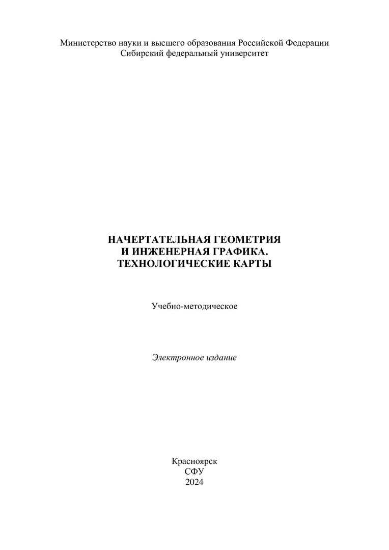 Библиографическое описание: Начертательная геометрия и инженерная графика. Технологические карты : учебно-методическое пособие / Сиб. федер. ун-т, Ин-т цветных металлов ; сост. Л. А. Голдобина [и др.]. - Электрон. текстовые дан. (pdf, 3,3 Мб). - Красноярск : СФУ, 2024 (2024-03-26). - 72 с. - Загл. с титул. экрана. - Изд. № 2024-21152 : Б. ц. - Текст : электронный.