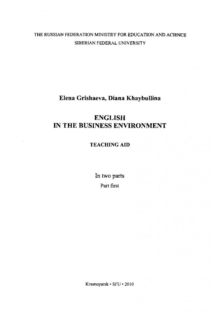 Библиографическое описание:Гришаева, Елена Борисовна. Английский язык в современном бизнес-пространстве = English in the Business Environment : в 2 частях : учебное пособие / Е. Б. Гришаева, Д. Т. Хайбуллина ; Сибирский федеральный университет [СФУ]. - Красноярск : Сибирский федеральный университет [СФУ], 2010 - . - Текст : непосредственный. + Текст : электронный. Часть 1. - 2010. - 119 с. - Bibliography: с.119. - : 43 р.