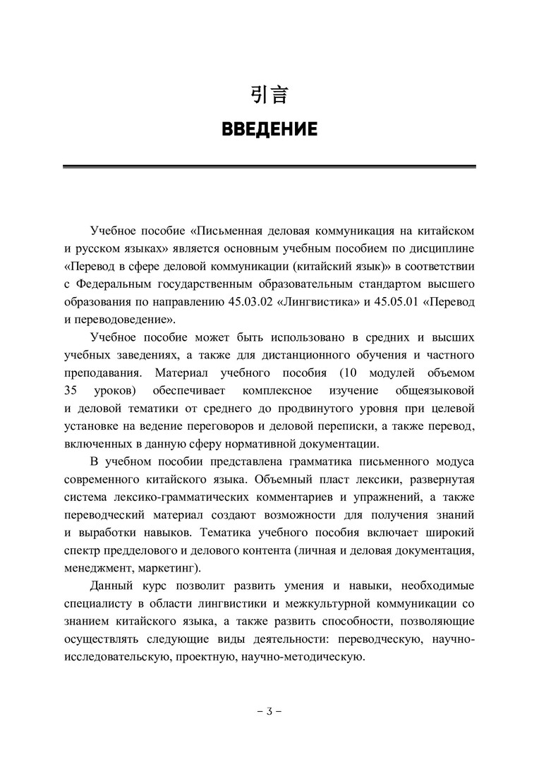 Аннотация: Представлены образцы текстов деловой документации на китайском и русском языках. Предназначено для студентов направлений 45.03.02 «Лингвистика» и 45.05.01 «Перевод и переводоведение». Может быть использовано студентами других направлений, учителями средних школ с преподаванием ряда предметов на китайском языке, а также в качестве справочного пособия лицами, занимающимися научной и переводческой деятельностью.
