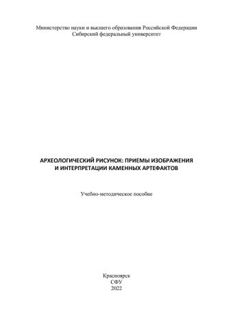 Библиографическое описание: Археологический рисунок: приемы изображения и интерпретации каменных артефактов : учебно-методическое пособие / Сибирский федеральный университет, Гуманитарный институт ; сост. Е. В. Акимова. - Электрон. текстовые дан. (pdf ; 12,1 Мб). - Красноярск : СФУ, 2022 (2022-02-25). - 64 с. : ил. - Загл. с титул. экрана. - Электрон. версия печ. публикации . - Библиогр.: с. 42-44. - 100 экз. - Изд. № 2022-15698 : Б. ц. - Текст : электронный.