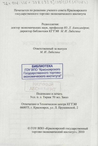 Библиографическое описание:Красноярский государственный торгово-экономический институт (Красноярск). Гусев Борис Константинович / Красноярский государственный торгово-экономический институт ; редкол.: Ю. Л. Александров, М. И. Лябегина ; отв. за вып. М. И. Лябегина. - Электрон. текстовые дан. (pdf, 10 Мб). - Красноярск : КГТЭИ, 2010. - 31 с. : фот. - ("Золотой фонд" КГТЭИ). - Загл. с титул. экрана. - Электрон. версия печ. публикации . - 70 экз. - 20.00 р. - Текст : непосредственный + Текст : электронный.