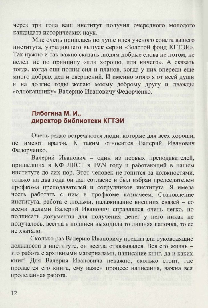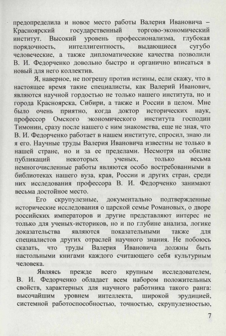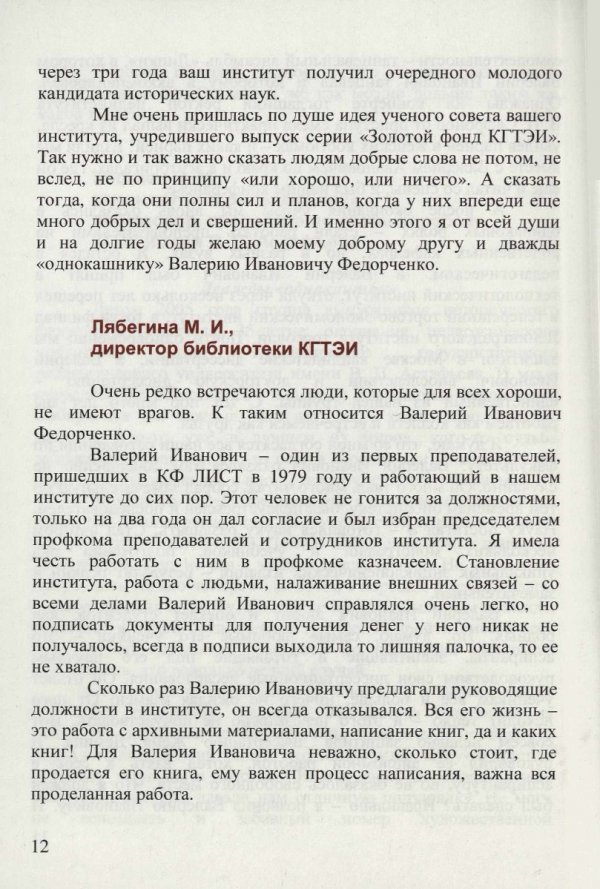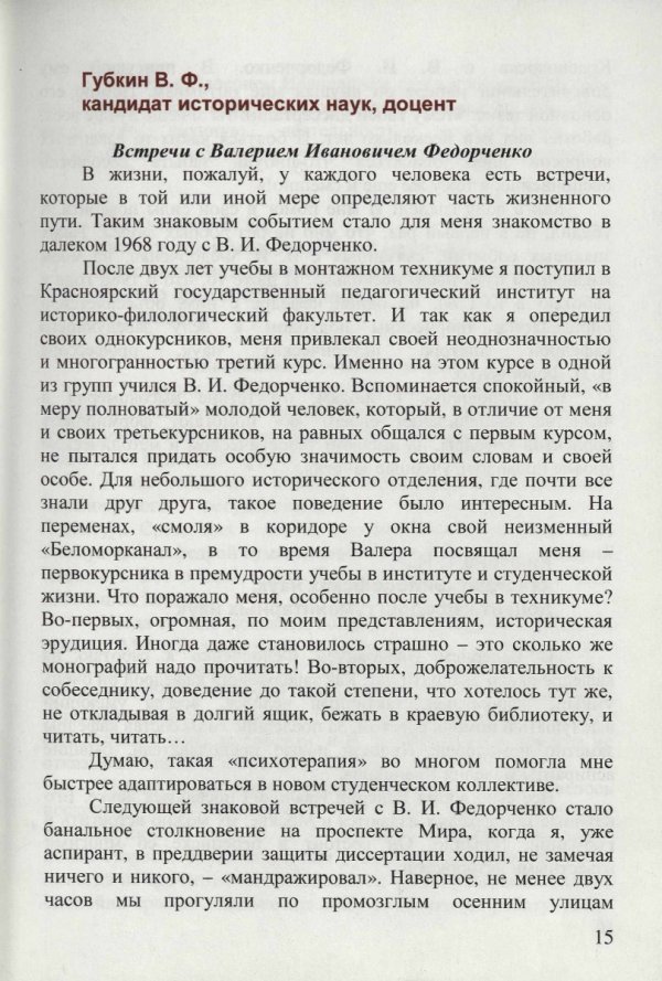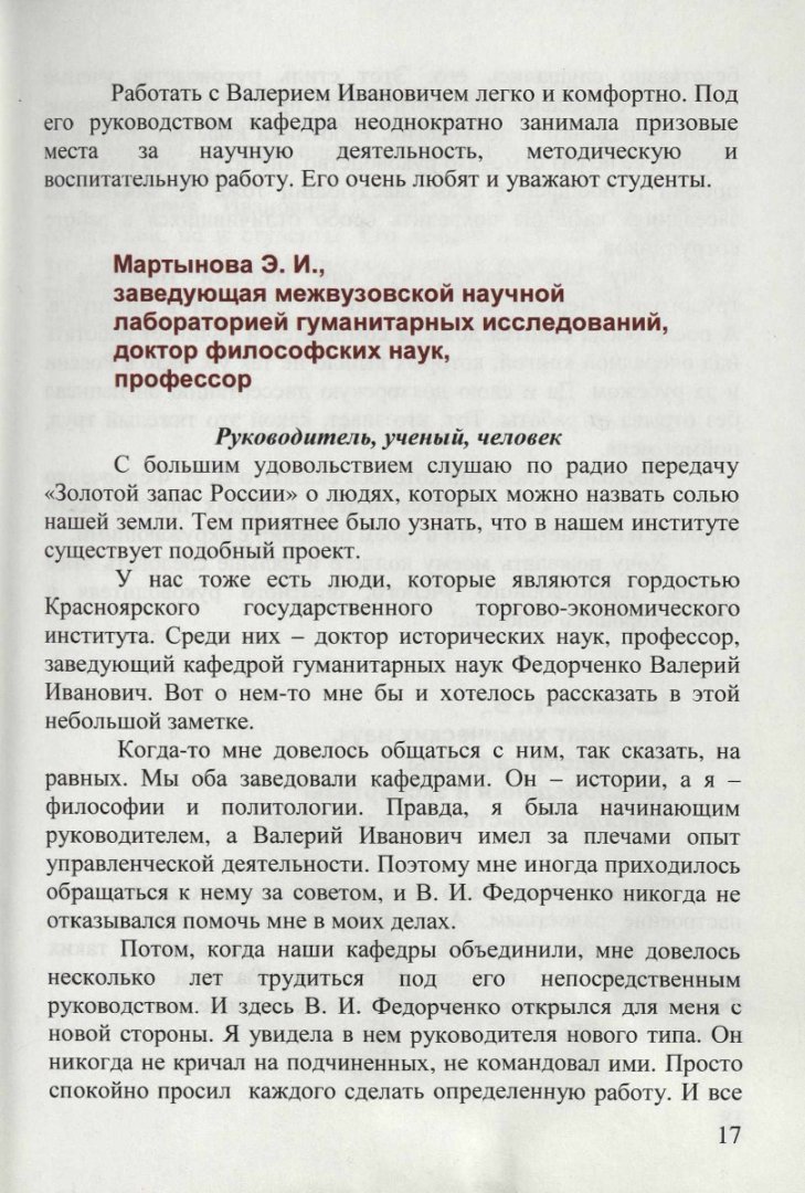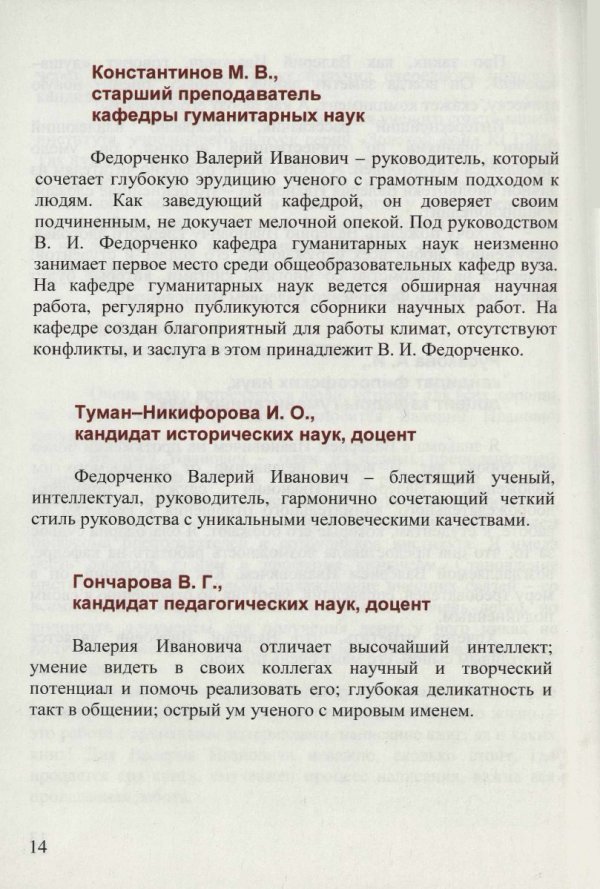 Аннотация: Настоящая брошюра продолжает серию изданий ученого совета Красноярского государственного торгово-экономического института о заслуженных работниках вуза. Цель, которую ставили перед собой составители брошюры «Золотой фонд КГТЭИ: Валерий Иванович Федорченко», - рассказать об удивительном человеке, талантливом ученом, дипломатичном руководителе, заботливом сыне и мудром учителе.