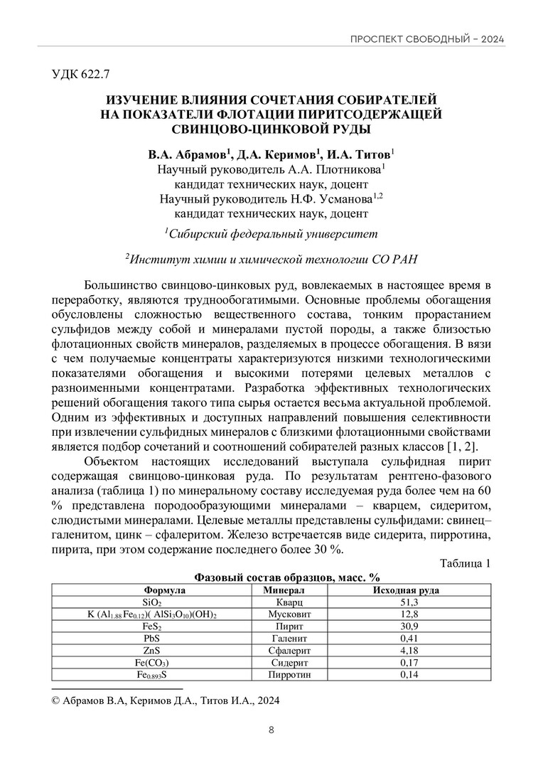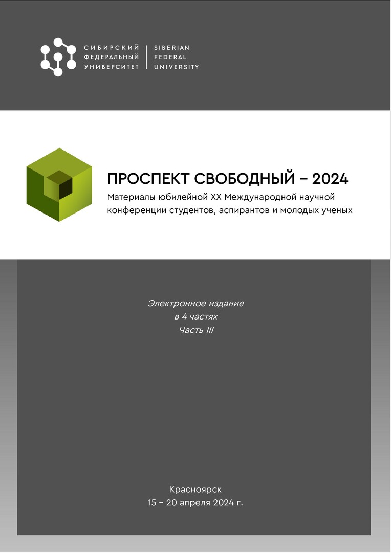 Проспект Свободный - 2024 : материалы юбилейной XX Международной научной конференции студентов, аспирантов и молодых ученых. Красноярск, 15-20 апреля 2024 г.. Ч. III
