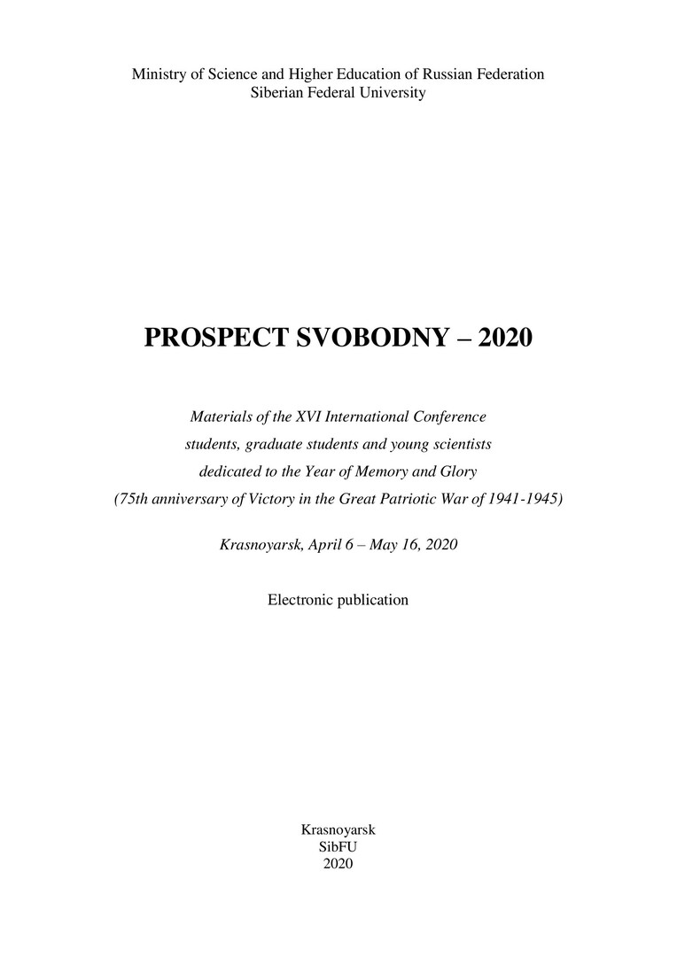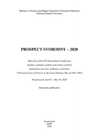 Проспект Свободный - 2020 : материалы XVI Международной конференции студентов, аспирантов и молодых ученых, посвященной году памяти и славы (75-летию Победы в Великой Отечественной войне 1941–1945 годов). Красноярск, 6 апреля – 16 мая 2020 г.