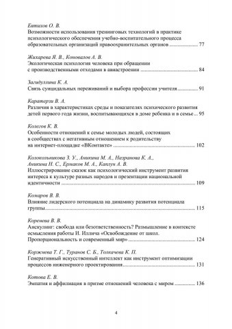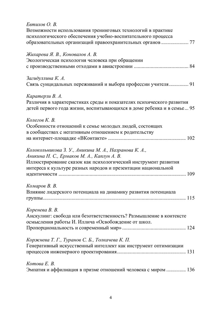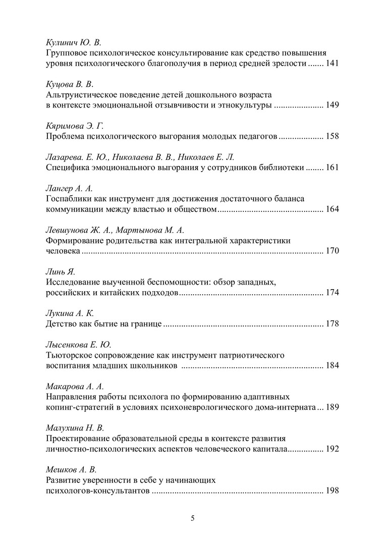 Ключевые слова: дошкольный возраст, психологические поведения, рискология человека, психологические проблемы человека, человеческий капитал, юношеский возраст, психологические проблемы, самооценка личности, экологическая культура населения, суицидальное поведение, лидерское мышление, искусственный интеллект, практическое применение в отраслях, эмпатия, аффилиация, психологическое консультирование, альтруизм, психологическое выгорание, эмоциональное выгорание, власть и общество, родительство, тьюторское сопровождение в сфере образования, уверенность в себе, инклюзивное образование, семейное образование, межэтнические коммуникации, тьюторская деятельность, стрессоустойчивость, профориентация молодежи, социальное взаимодействие, творческое развитие детей, культура здоровья, социализация детей в коллективе, дети сироты, социальная креативность