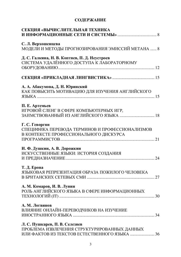 Ключевые слова: парниковые газы, метан, удаленный доступ, лабораторные стенды, обучение английскому языку, мотивация в образовательном процессе, сленг компьютерный, компьютерные игры, термин, терминология, перевод профессиональных текстов, искусственный язык, эсперанто, образ человека в языке, пожилой человек, английский язык, для программистов, информационные технологии в обучении, семантика естественного языка, формализация семантики языковых единиц, машинный перевод, человеческий перевод, неологизмы, аббревиатуры, сокращения слов в английском языке, научные тексты, тексты на английском языке, морфология английского языка, возобновляемые источники энергии, нейроэволюционные алгоритмы, раскрой металла, севооборот, сейсмостратиграфия, онлайн-тестирование, водоподготовка, классификация болезней растений, байесовский анализ, нейронные сети искусственные, распознавание городских звуков, численная оценка документов, компьютерное зрение, информационная безопасность субъекта, электронная коммерция, многомерные системы управления, клавиатура компьютера, защита от утечки информации, несанкционированный доступ в информационную систему