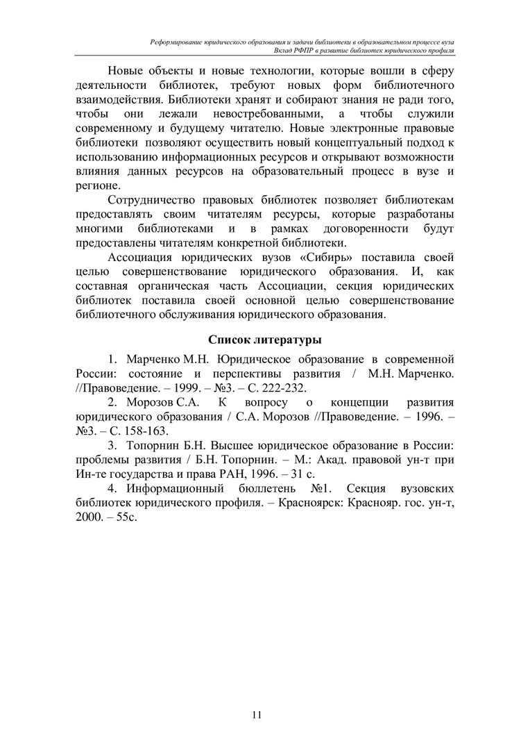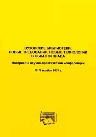 Библиографическое описание:Вузовские библиотеки: Новые требования, новые технологии в области права : материалы научно-практической конференции, 12-16 ноября 2001 г. / Красноярский государственный университет, Научная библиотека, Ассоциация юридических факультетов и вузов "Сибирь", Секция вузовских библиотек юридического профиля ; сост.: Е. Г. Кривоносова, И. С. Колосова. - Красноярск : КрасГУ, 2002. - 102 с. - 45.80 р. - Текст : непосредственный + Текст : электронный.