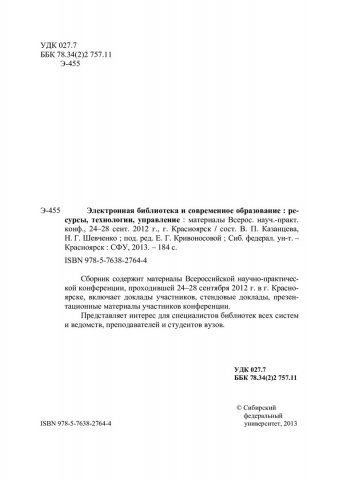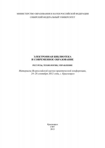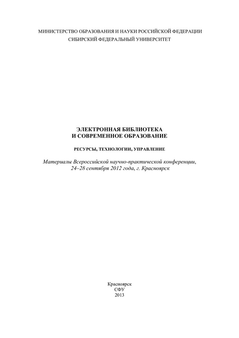 Электронная библиотека и современное образование : ресурсы, технологии, управление : материалы Всероссийской науч.-практ. конф., 24-28 сент. 2012 года, г. Красноярск