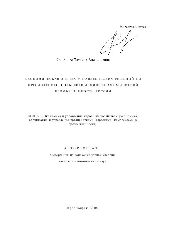 Экономическая оценка управленческих решений по преодолению сырьевого дефицита алюминиевой…