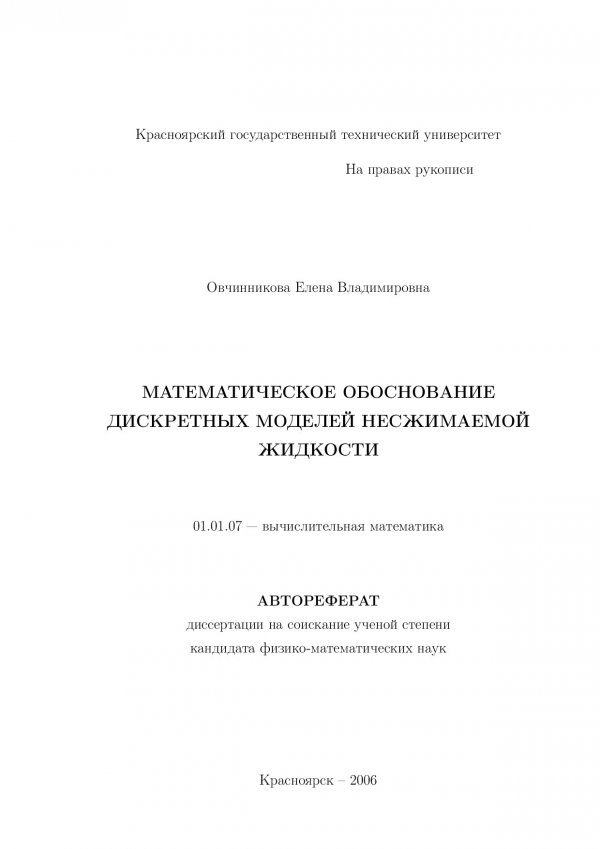Математическое обоснование дискретных моделей несжимаемой жидкости