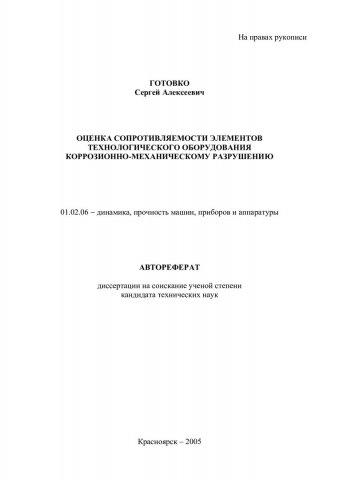 Оценка сопротивляемости элементов технологического оборудования коррозионно-механическому разрушению